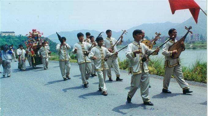 鼓亭锣鼓由鼓亭和音乐两部分组成,两部分密不可分,故称为鼓亭锣鼓。鼓亭为一座三层四角亭,高二米三十左右,一米余见方。垂檐翘角,回廊曲栏,前后对门,两面开窗,中悬彩灯,传统建筑式样。整体造型类似古代皇宫的角楼。以紫竹为架,四壁用绢、绫、绸等丝织品加以装饰。全套乐队72人组成,也有用半套的,即36人,分为打击乐、拉弦乐、弹拨乐、吹奏乐等四大组。乐队演奏工尺调,有七个乐章:大花鼓、三百子、乾坤镜、分狄、背疯婆、水漫、和番等。通常是坐堂而奏,有时也边行边奏。出行时,鼓亭固定在两根竹竿上,前后两人肩挂红绸,双手下垂提着竹竿,缓缓而行。