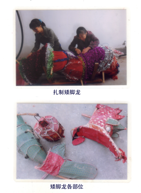民间彩灯之一“矮脚龙”,具有悠久的历史,传说:它是来自上苍,并赋予它呼风唤雨、裱灾祛难的神奇力量。在解放前,每逢舞龙时,为了祈求风调雨顺、人寿年丰,在大旱之际舞龙,为了盼望大降甘霖,以保收成。这都是出于对它的敬恭和仰以及企求它能发挥想象中的作用,所以矮脚龙在人们的印象一直占有重要地位。解放后,由于矮脚龙丰彩多姿,意象含蓄广泛,所以在各级政府部门的关怀和支持下,此舞更加得以发展和提高。它不再是人们祈求的神物,成了表现人们奋发昂扬的精神及幸福生活的现象的一种艺术形式。