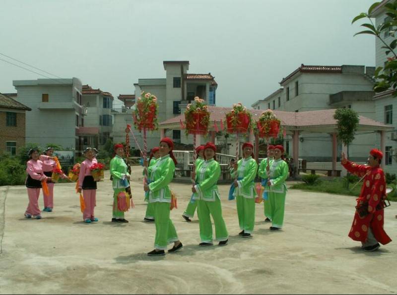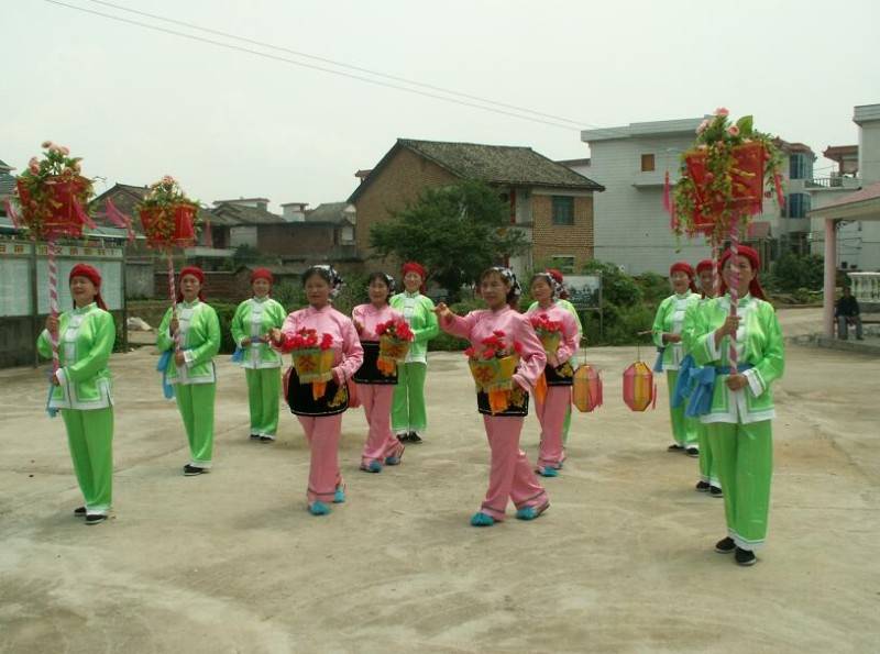莲花茶灯舞又名茶灯闹春。自上世纪二十年代以来在我县六市、高洲、坊楼等乡镇广为流传。乡间村民每逢喜庆佳节,常以莲花茶灯舞上门祝福。该舞每到一处,主人在门外鸣放鞭爆相迎。表演者进入堂屋或大厅时,都要高喊“恭喜发财”“恭喜万福”等赞语。舞毕,主人向表演者赠送红包或备以茶点、酒食款待,作为酬谢。