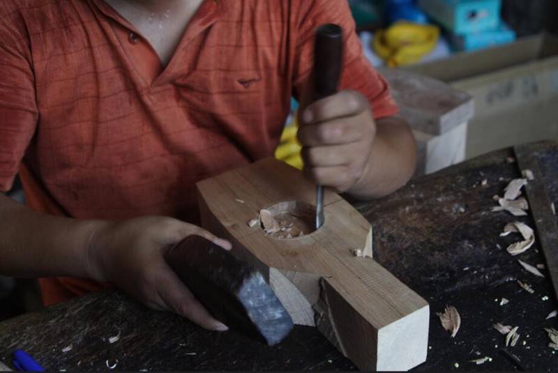 明朝洪武二十年,在乔乐乡小岭村有一个叫熊泰生的人,生有六子,其中老二日葛和老三日洪长大成人后前往徽州婺源墨印坊(即砚台作坊)学艺。艺不外传是过去绝活艺人的规矩。熊氏兄弟俩为了能把该技艺学到手,装哑吧三年,在墨坊当杂工,默默苦干。白天帮老板干活,晚上偷用老板的材料和工具,躲到自己的房间用心绘图并细心雕刻。经过三年,把全部的技艺学到了手,于是兄弟俩向老板提出辞呈,回到了家乡。