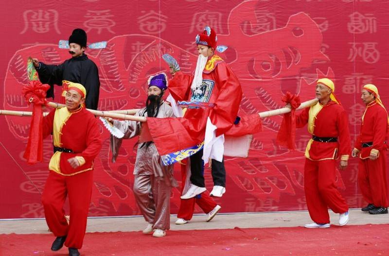 随着历史发展,“装故事”不再是单纯的驱瘟避邪形式,而逐渐演变成一种祈福酬神的民间娱乐活动,所装扮的故事情节也增加了众多历史英雄和传奇人物。