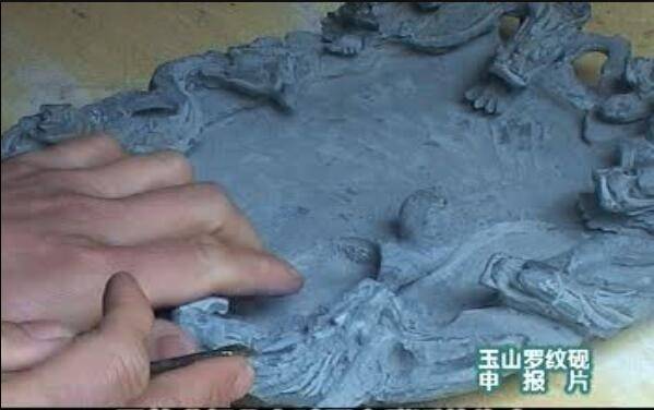雕琢:在绘好设计图稿的坯石上,采用浮雕、镂雕、浅浮雕等手法,将设计意图形象地表现出来。这是一项抽象思维与形象思维相统一的精湛技艺,需要高超的审美意境。是体现作品表现力的关键环节。只有巧妙的设计加上出神入化的雕刻工艺,才能制作出巧夺天工的罗纹砚精品。