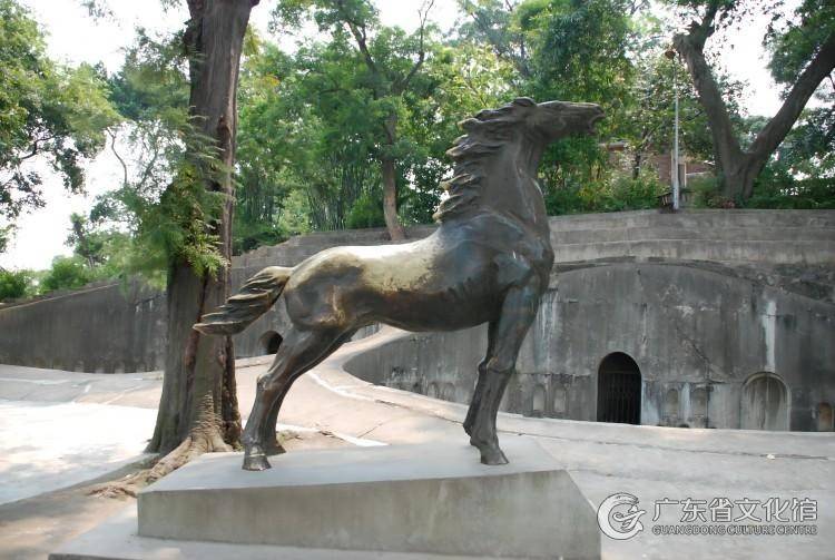 1841年,英兵集舰进犯虎门防线第一重门户——沙角炮台。当时的守将,驻守香港官涌时曾连续6次击退英兵进攻的陈连升,调升三江协副将驻守沙角。是役,英军以舰艇绕后山登陆,前后夹击,陈将军父子身先士卒左右拼杀,全台将士壮烈殉国。阵地上遗下将军坐骑黄骝马守义嘶鸣,英兵近前则飞蹄踢敌,怒目扬鬃。英兵围捕义马,然后强行绑至军舰运抵香港,途中战马一路望北悲啸。英兵欲驯服战马,施以精料饲养,黄骝马宁饿不从;英兵强骑勒驯,马则昂首扬蹄摔敌;英兵怒恼,示以刀、棍,马仍桀骜不羁,视死如归。英兵无奈,将马放置孤岛山中企图困服。国人传讯,争相目睹仪容;感伤者跪地捧食,马则垂头舔舌;围观者置食于地,马却视而不见,侧目离开;若有议论赎马回归虎门为将军守灵尽孝,黄骝马便跪蹄摇尾、潸泪供骑。将有灵、马有义,英人难堪,禁止华人济马,黄骝马自此形销骨立,一年后在香港绝食自殉,节气流芳。
