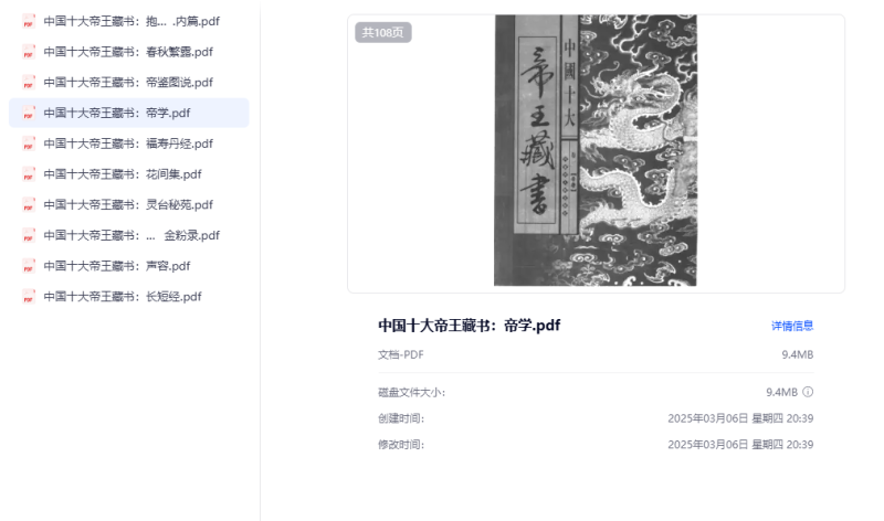 chinarts 我用夸克网盘给你分享了「中国十大帝王藏书合集」,点击链接或复制整段内容,打开「夸克APP」即可获取。 /07be397j4g:/ 链接:https://pan.quark.cn/s/cc71b4e136ca